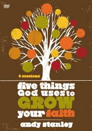 One of the resources I picked up while I was at Re:Group was Andy Stanley’s Five Things God Uses to Grow Your Faith. Published by Zondervan in 2009, the study is based on five faith catalysts that North Point has identified as the things God uses repeatedly to grow people’s faith.